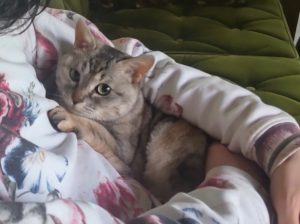 薄暗い部屋で猫と夕涼み。