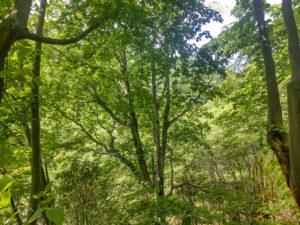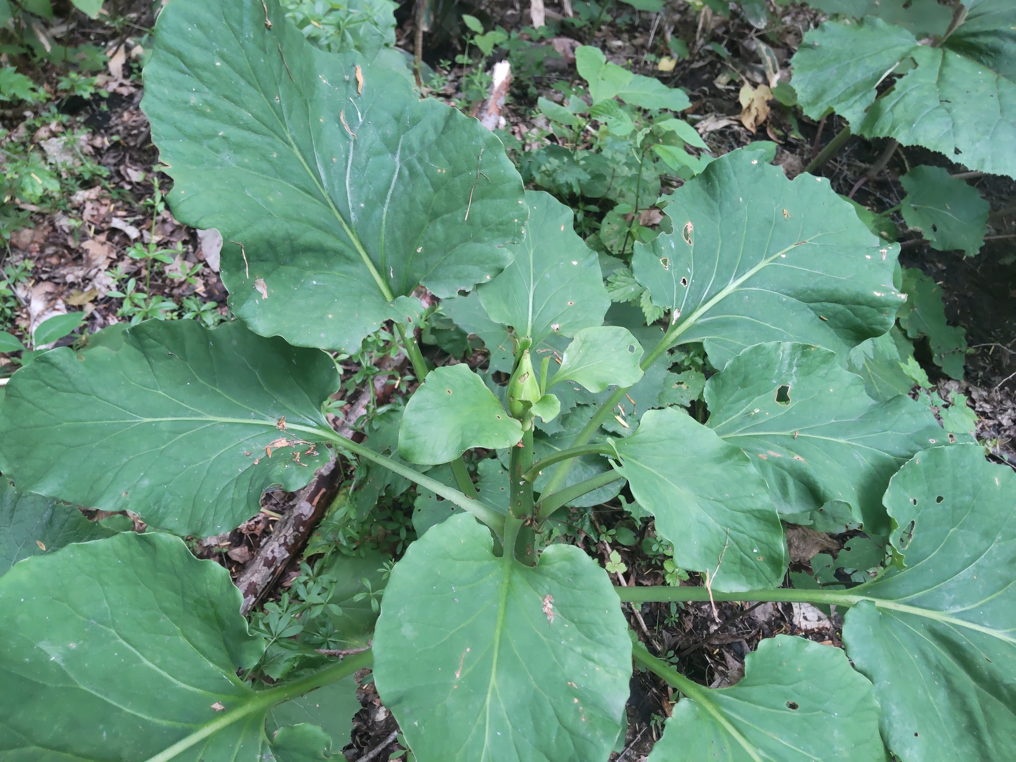川の方へ降りていく道沿いのオオウバユリは蕾ができ始めていたけど、裏庭のオオウバユリは今年も葉だけで終わりました。