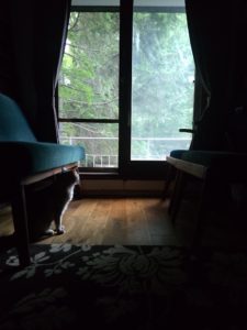 夕食後にビリーさんを撫でながら、外をぼんやり眺める。