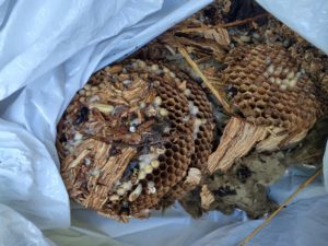 3段構造の立派な巣の駆除後。屋根裏には他にも古い巣が2〜3個あったそうで、業者さんに「ここ人気スポットみたいですね」と言われてしまった。