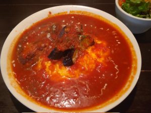 私はハンバーグとナスのオムライスをチョイス。これにサラダとデザートとコーヒー付で1400円なり。なかなかのボリュームで、満腹オブ満腹…!