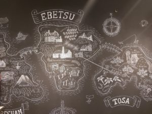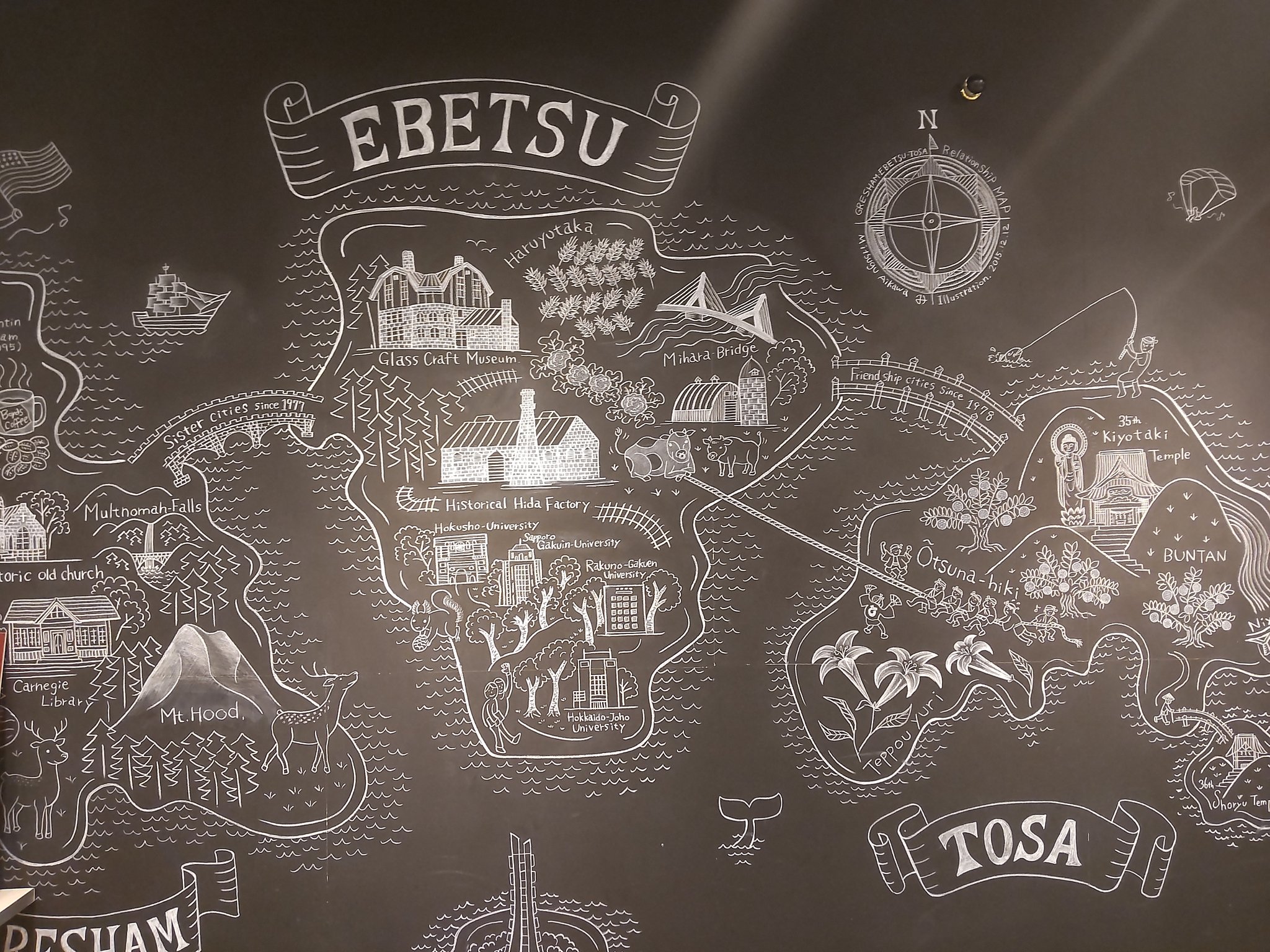 ミツグさん作の地図を見て満足満足。えぶり市場で買った谷口農場のさつまいもラテがおいしすぎました。