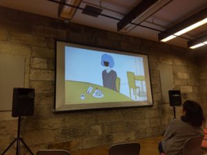 伊藤隆介さんがいて「見てって」と言ってくださったので、テスト上映している作品を少しだけ拝見。