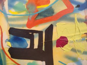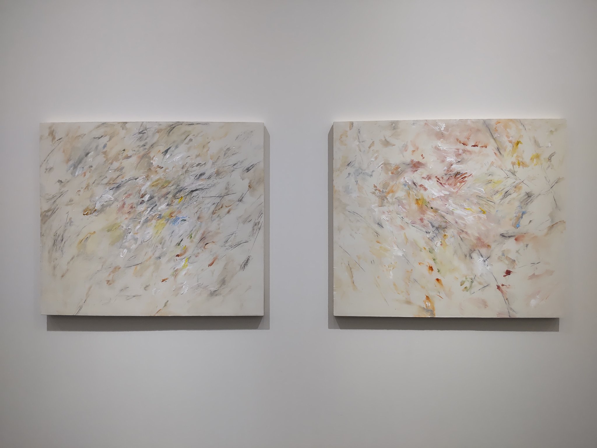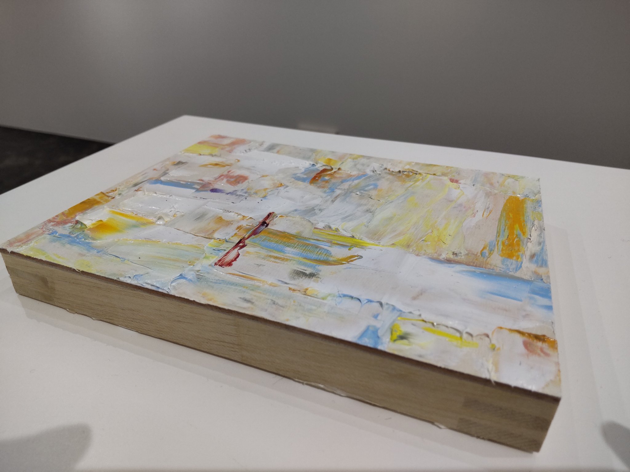 ベニヤ板の彫り跡の上の絵具とか、盛り上がりは布のたわみだったりとか、何か見え方がいろいろ錯覚する感じでいろんな角度から見てしまいました。行きのエスカレーターで本展帰りの山本雄基さんとすれ違って、一瞬話せたことも嬉しかったっす。